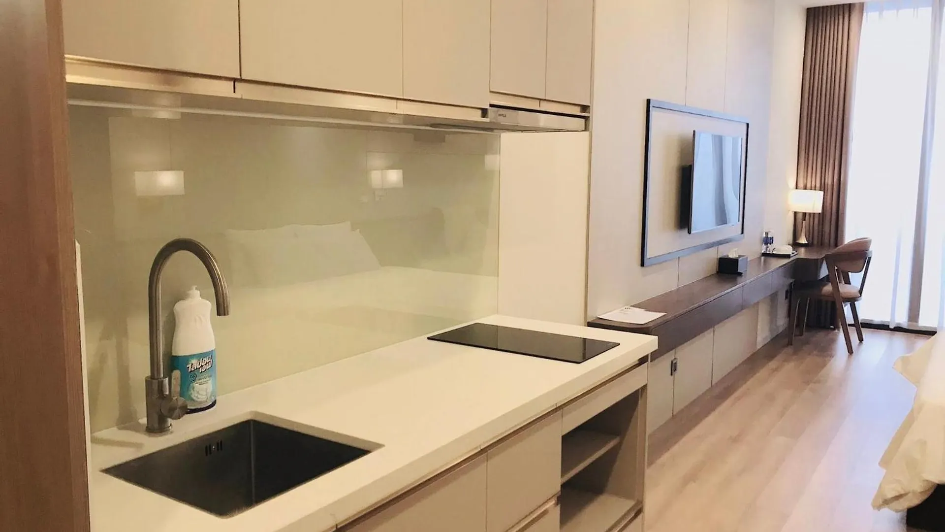 Enjoy the convenience of a full kitchen in Bin Homestay, allowing guests to prepare their own homemade meals.